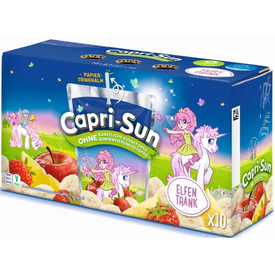 Zutatenverzeichnis: Quellwasser, Mehrfruchtsaft* 10% (Zitronensaft*, Apfelsaft*, Bananensaft*, Erdbeersaft*, Limettensaft*, schwarzes Karottensaftkonzentrat), Zucker, Vitamin C, natürliches Aroma. (*aus Fruchtsaftkonzentrat).
